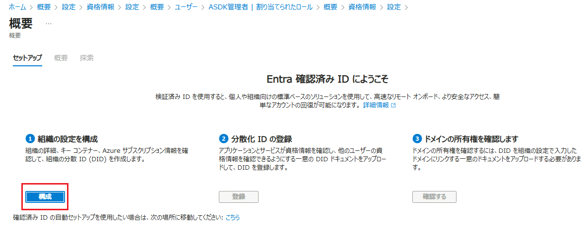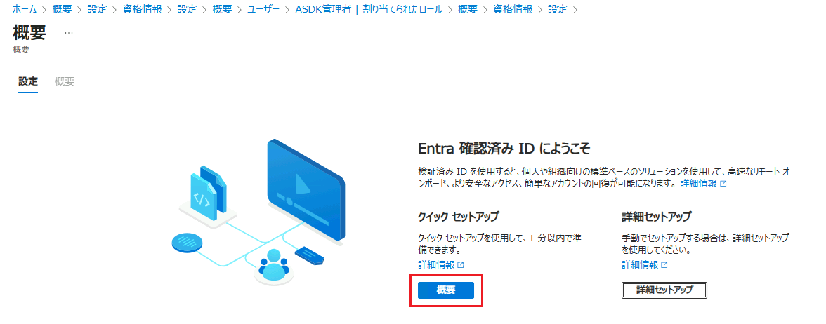 [Entra ID管理センター]から、[検証済みID]-[概要]-詳細セットアップからセットアップを行います。