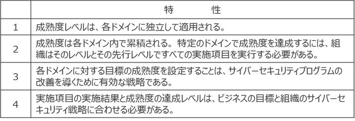 ドメインの実施項目に対して、成熟度(MIL: Maturity Indicator Level)が1~3のレベルで設定されている。成熟度は、表3に示す特性を持っている。