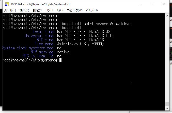 ⑤ TimezoneをAsia/Tokyoに設定後、NTPサービスの状態を確認します。
