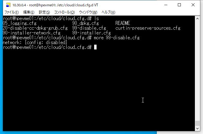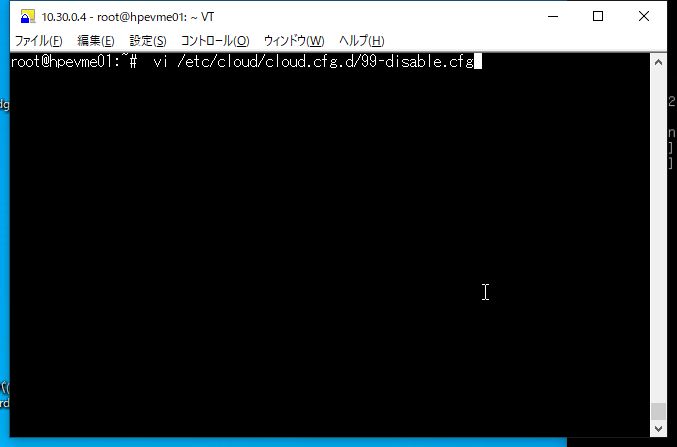 ⑥ HVMホスト再起動時のネットワーク設定初期化動作を無効化するため、cloud-initの設定ファイル「/etc/cloud/cloud.cfg.d/99-disable.cfg」を作成します。