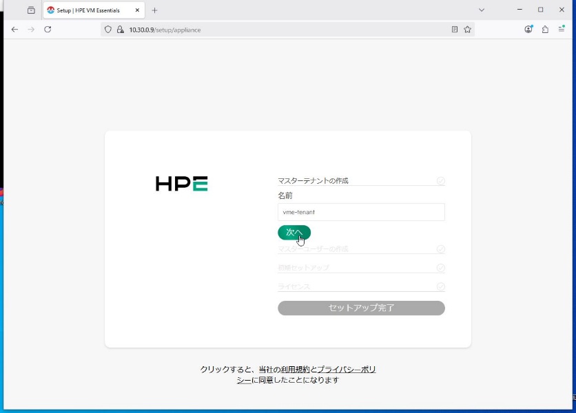 ① テナントやマスターユーザーを作成していきます。まずはマスター・テナントの名前を設定します。