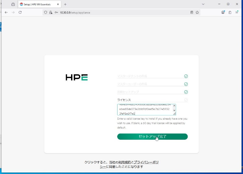⑤ 20分前後でインストールが完了し、Appliance URLにアクセスしてくださいというメッセージが出ますのでブラウザでアクセスします。