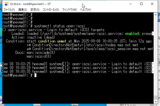 ④ iscsidデーモンの状態が[enabled]になっていることを確認します。