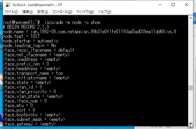 # iscsiadm -m discovery -t sendtargets -p [ターゲットのIPアドレス]