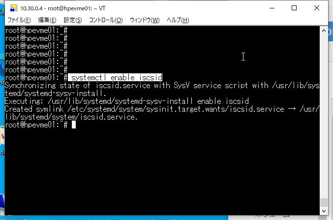 ⑭ ホスト起動時のiscsidを、自動起動設定を有効化します。